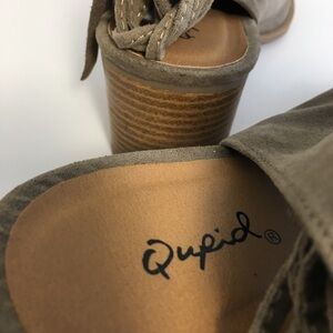Qupid Gray Gladiator Stacked Block Heels Shoes Size 9 With Long Strings Tie