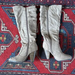 Chic over the knee boots by Qupid. Features stylish buckle accents. Perfect for elevating any outfit. Never worn.