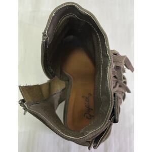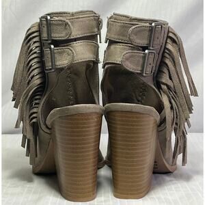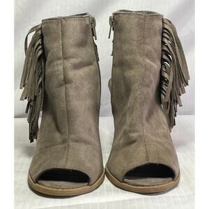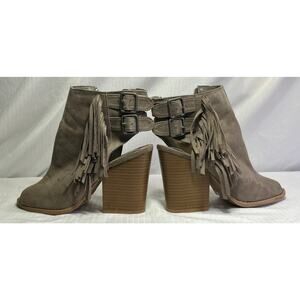 Qupid Grey Faux Suede Peep Toe Open Heel Fringe Buckle Accent Zip Up Ankle Sz 7