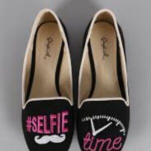Qupid Hashtag Selfie Time Black/Pink Special Novelty Flat Loafer Shoes Lady's 9