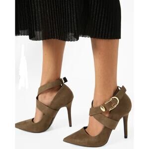 Qupid Khaki Green Cross Strap Goldtone Buckle Stilletto Heel Pointy Toe