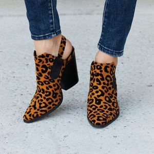 Leopard booties are a fun way to add some wild-cat flair to your everyday look. The pattern on these leopard open heel booties is subtle enough that you can wear them anywhere—to work, for drinks with friends, or out on the town.