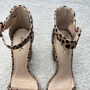 Qupid Leopard Print Open Toe Heels 6.5. Preowned and in great condition. Heels have barely been worn, very soft and you can feel the spots on the shoe. Has ankle strap with sandal style and heel. Please see all photos. Heel is 4".