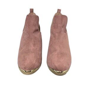 Qupid Mauve Faux Suede Modern Gold Toe Accent Ankle Bootie Sz 7