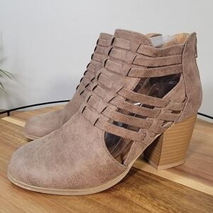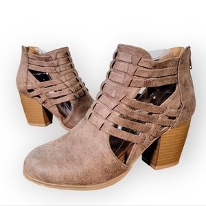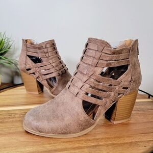 Qupid Maze -93 Open Weave Taupe Ankle Boots Booties Size 6