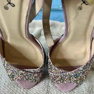 Add a pop of glam to your outfit with these stunning multicolor glitter heels!! Featuring a chunky high heel, a comfy platform sole & secure ankle strap, these shoes are perfect for parties, nights out, or any even where you want to shine.