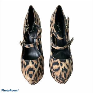 Qupid NWOB Penelope Leopard Platform Nubuck Mary Jane Pumps Shoes