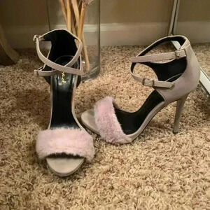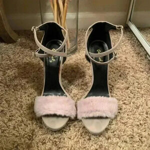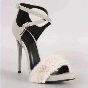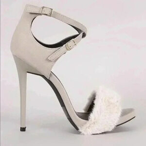 Qupid Nubuck Light Grey Fur Front High Heels Size 6