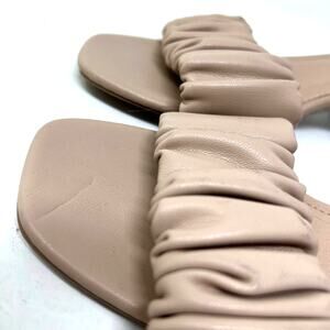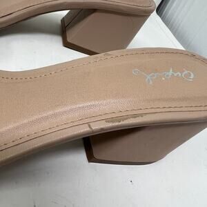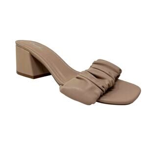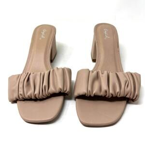 Qupid Nude Tan Scrunch Open Front Slide Mule Block Heels Size 8.5