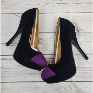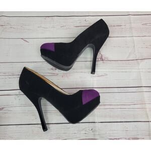 Qupid Onyx-97 Black Purple Velvet Heels - Size 7.5 Pumps