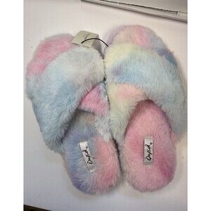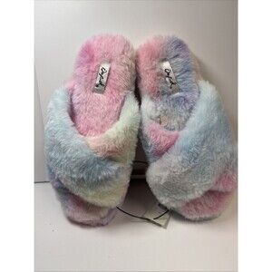 Qupid Pastel Rainbow Fuzzy Slip On Slippers Sz 6 New
