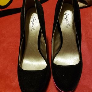 Qupid Platform High Heel Shoes Size 6. Black Micro-suede with hot pink trim. Worn once. In very good condition.