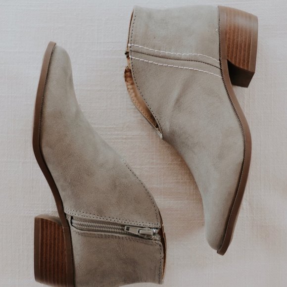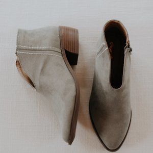 Suede Bootie with Stitch Detail in Khaki