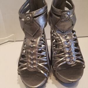 Qupid Sexy Grey Platform Heels Zipper Back Comfortable Lightweight Women Sz 4.5