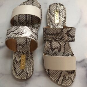 Qupid Snakeskin Banded Vegan Leather Sandals Slides Size 6