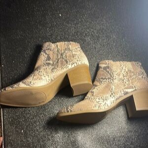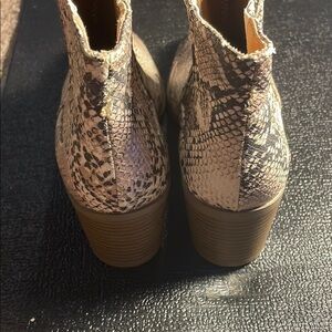 Qupid Tan and Black Ankle Boots with Snakeskin Print