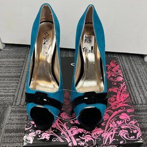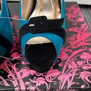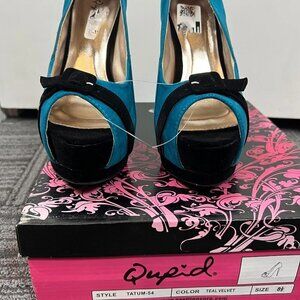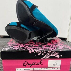 Qupid Tatum 47 teal velvet Ruched peep toe Platform Pumps Sz 8
