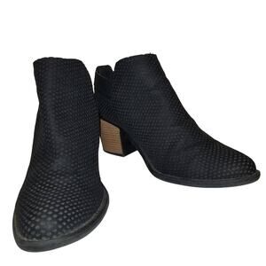 Qupid Booties Stacked Heel Almond Toe Weave Size 8Heel Height: 2.50 inch, Occasion: Casual, Style: Booties