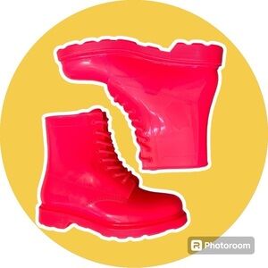 Qupid Vika all pink everything neon pink jelly combat boots in size 8.