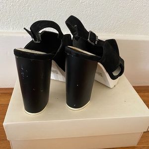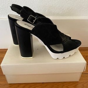 Suede wedge sandals/heels with white platform. Like new, only worn once!