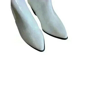 Qupid White Faux Leather Gator Embossed Block Heel Pointed Toe Booties Womens Size 7