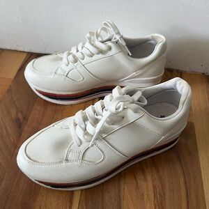 Step up your style with these chic white platform sneakers featuring a vibrant rainbow sole. Perfect for adding a pop of color to any outfit. Perfect for Pride! Size 8, GUC, smoke free home.