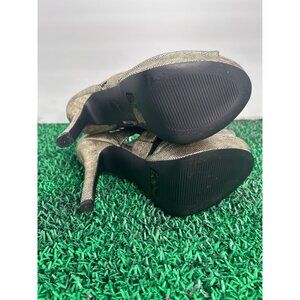 Qupid Womens Gold Strappy Peep Toe Stiletto Heels Sandals Size 8 High Back Zip