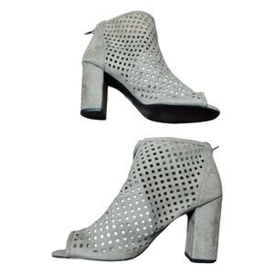 Qupid Women's Gray Cut Out Peep-Toe Ankle Boots 10 Block Heel Stylish Minimalist