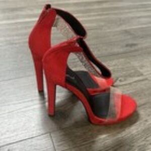 Qupid Women's High Heel Shoes Size 7.5 Red Faux Suede Ankle Strap