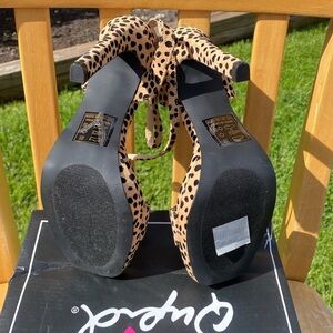 Qupid Women’s Leopard Open Toe Heels Size 8