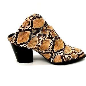 Qupid Womens Pumps Multicolor Snakeskin Block Heel Almond Toe Open Heel Slide 9
