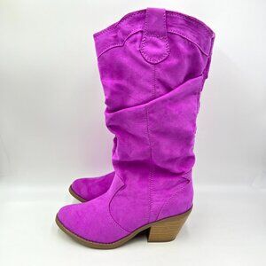 Qupid Womens Size 6 Fuchsia Pink Vegan Suede Western Style Boots