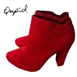 Qupid Women's Red Suede Platform Ankle Boots Booties 10