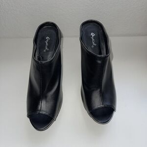 Qupid Y2K Peep Toe Chunky Platform Heeled Sandals Whimsygoth Grunge Black Sz 8