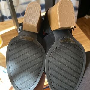 Qupid black suede man made material with ankle tie Size 7 Peel toe Wooden heel 3.5”