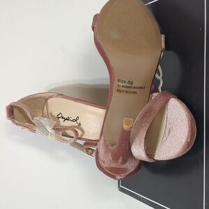 Qupid blush velvet heels sandals size 5.5