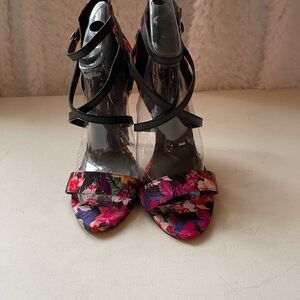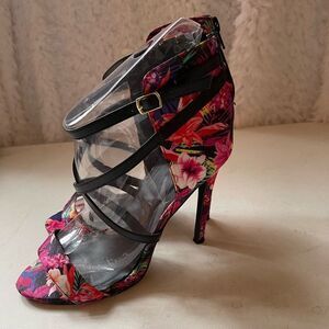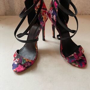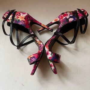 Qupid satin multi color floral open toe ankle straps sandals Sz10.