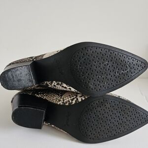 Qupid women's bootie snakeskin black white block heel 7.5