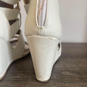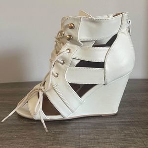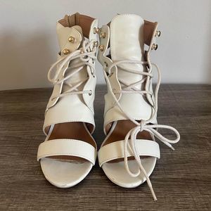 Qupid women’s white lace up peep toe bootie sandals size 7.5