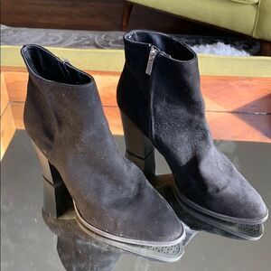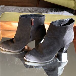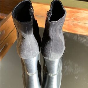 Chic Qupid vegan suede black ankle boots. They’ve had very little wear, but please note the faint scuff mark on the toe of the left boot (see close up pic). Lots of wear left in these pups! I also have them available in the tan color shown in the last pic, size 10, like new condition. If interested in those, please leave a comment and I’ll make a listing for you 😘