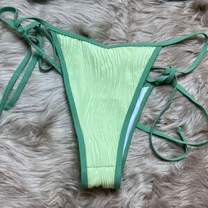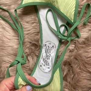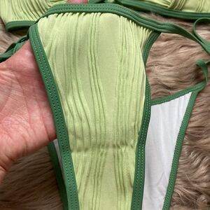 Qwent Two Piece Bikini Halter Bandeau Cheeky String Textured Swimsuit in Green