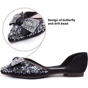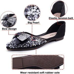 【rhinestone shoes for women】:Classic style cute dress flats for woman,Women flats classic and versatile design for daily wear and superior fit,ballet flat shoes shape is neat and clean,It features soft, light and flexible