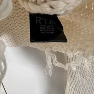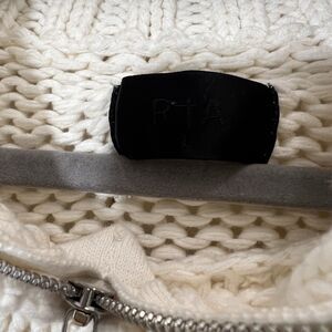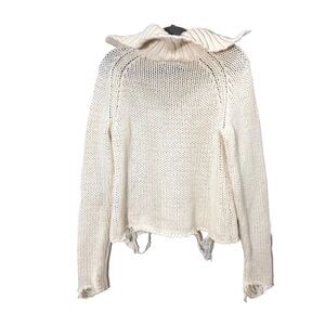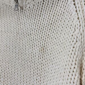 R+ A Sweater Womens L Chunky High Neck 1/4 Zip Ivory Distressed Pullover FLAW
