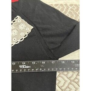 (R) ANTHROPOLOGIE Guinevere Beaded Lace Applique Cardigan Sweater Black Vintage