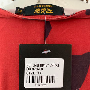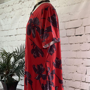NWT R & B Collection Rusty Red Floral Scoop Neck Short Sleeve Tunic. This Tunic top has side slit pockets! Can be worn a mini dress or with leggings! ♥️