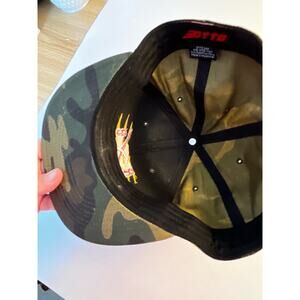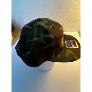 R B Otto Cap snapback 6 panel cloth Camo - has a red embroidered symbol that I would say is a bird or duck or similar. Hat is new. Please see pictures