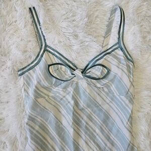 R Women's Baby Blue & White Stripe Linen Blend Sweetheart Dress. Size M
