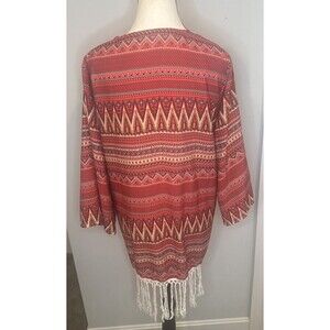 R Cinco Ranch Womens Southwest Western Red Patterned Sheer Open Front Cardigan S