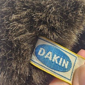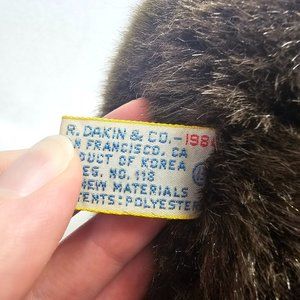 Pre-owned R. Dakin brown bear plush stuffed animal. Measures approx. 10" tall when in sitting position. Tush tag still attached. Marked 1984, made in Korea. Vintage. In very nice condition for its age, one small dark brown spot on bottom of front left paw.