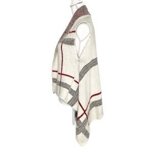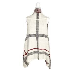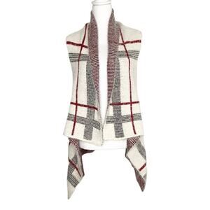 R Fashion Apparel ivory, red and black plaid sleeveless open front soft layering cardigan